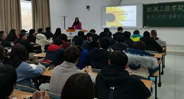 2019年11月26日中午12:40,太阳成集团tyc33455cc官网辅导员徐晓琴老师在乐群楼305教室为学生授课。徐晓琴老师指出团学干部的本质还是学生,要做好最基本的任务——学习,并且要学会合理分配时间,处理好工作和学习之间的关系;其次,强调了个人与集体之间的关系,主动服务学生、帮助学生,为集体的发展贡献一份力量;最后,徐晓琴老师谈及情绪问题,论述了嫉妒、愤怒等情绪对人的影响,通过列举一个失恋者的心理治疗过程例子,希望同学们能管理好自己的情绪。