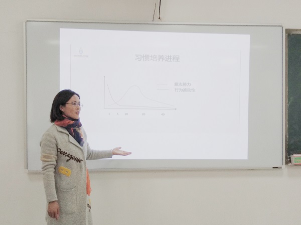 2019年11月25日中午12:40,太阳成集团tyc33455cc官网辅导员王玉敏老师在乐群楼409教室讲述了自控与习惯的重要性。“科学用脑,从自控到习惯,从科普到自控,从管理到自控”是王玉敏老师阐述的第一个主题。她提到人是有感性和理性两面的,我们要学会控制自己,克服大脑“懒”的特性,从行动上学习新技能,执行新计划,克制自己长时间上网的欲望。“为什么要培养习惯”是王玉敏老师授课的第二个主题。好的习惯能让我们快速解决生活中的问题,有余力去做其他事情,大一新生要养成好的习惯,学生干部更要培养良好的习惯,核心习惯会驱使自身行为与思想潜能的变化。